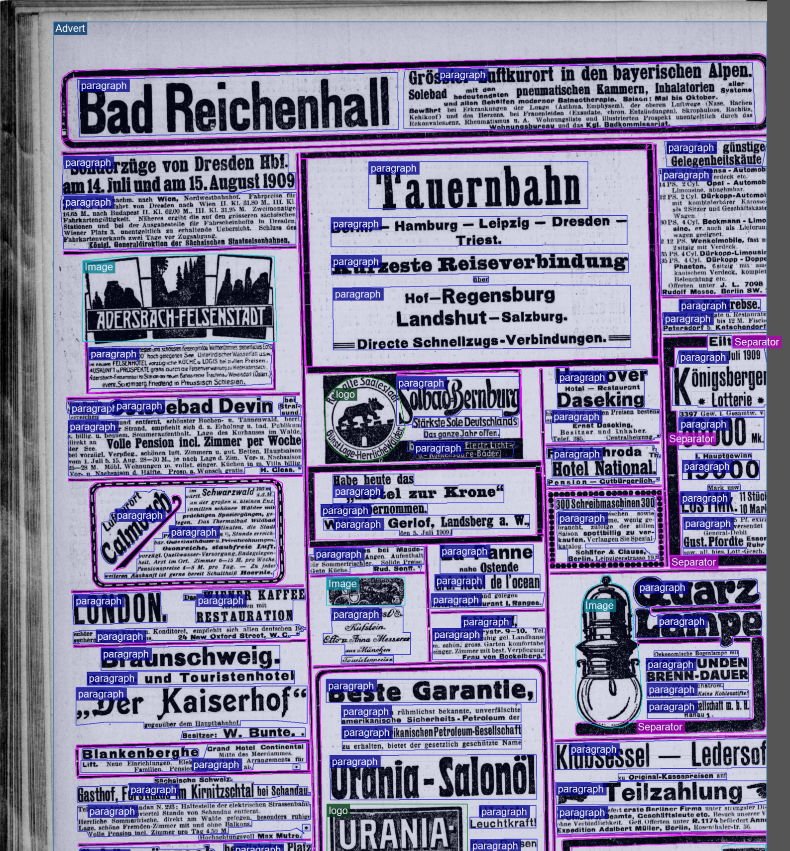 Werbung, Anzeigen, Reklame, Annonce, Inserate sind als AdvertRegion zu kennzeichnen. Eine Auszeichnung von einzelnen Anzeigen bei Zeitungen ist abzusehen, sondern der gesamte Bereich der Anzeigen ist mit der AdvertRegion zu markieren.